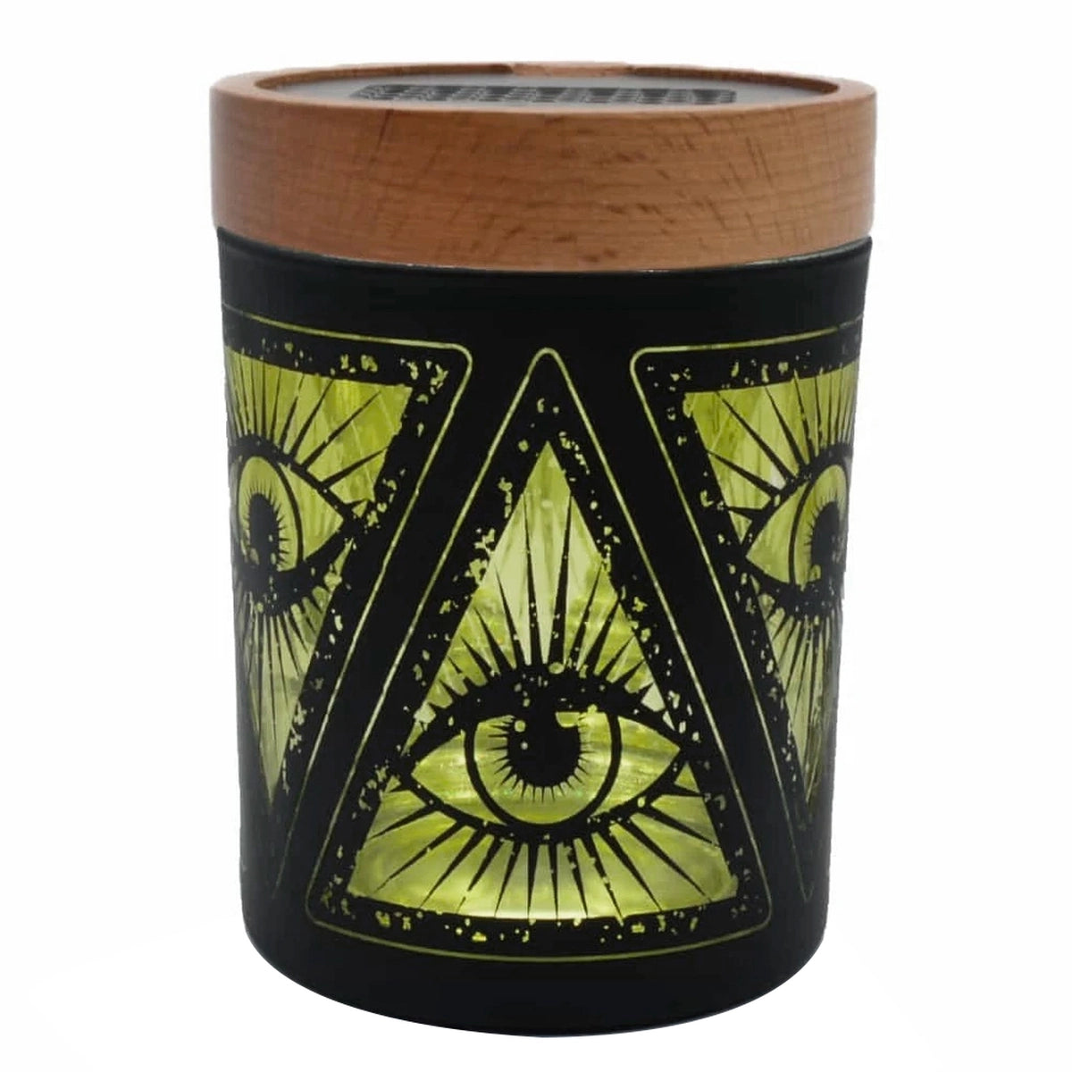 Keep your stash secure with the Illuminati herb storage jar from V Syndicate. These SmartStash jars keep bud fresh day in and day out. V Syndicate jars are the ultimate herb storage option complete with a built-in grinder plate so you can grate and store on the go - eliminating the need for a large rotary grinder. These stash kits also include a humidity packet, funnel, and a wooden lid secured with magnets. Choose from three sizes: the small jar standing 3.5" tall with a ¼ ounce capacity, the medium jar standing 4" tall with a capacity of a ½ ounce, or the large jar standing 5" tall with a capacity of 1 ounce of flower respectively.